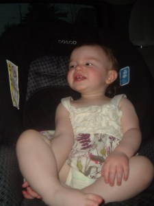 Well, She lets me put bows in her hair and she keeps them in. She LOVES shoes. She really likes to play outside (a little too much that I often have to keep the doors shut so she forgets there is an outside and stops asking me about it). She likes sidewalk chalk and bubbles. She loves getting in an out of her new blue wagon. She loves playing with buckles and seatbelts. The cutest word that she says is “peeeeze” (please) because it not only sounds cute but it goes along with the cutest little smile. As far as her height and weight I am not so sure because her check-up is not until Wednesday but I think she os probably only about 22 lbs at this point. Lucy knows all of her animal noises and our favorite is the Gorilla because she bangs on her chest, I think her favorite is a dog because she does it the most. She brushes her own hair and teeth and will not let me forget to put tooth paste on her tooth-brush. And lastly, you Lucy are a great sleeper and I am so thankful!!