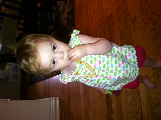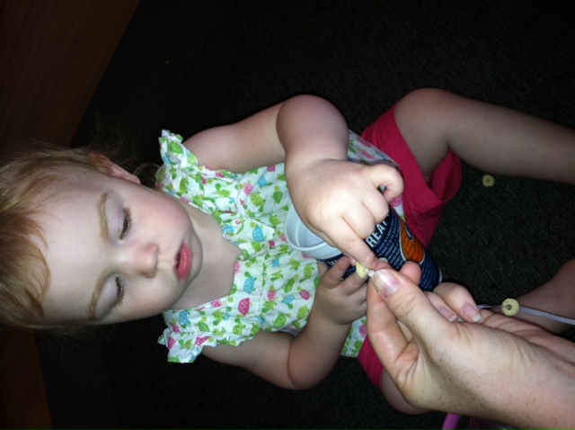 This activity serves two purposes. She has snack readily available anytime she is hungry and I get to sit on my butt in the a/c for an extra 10 min!