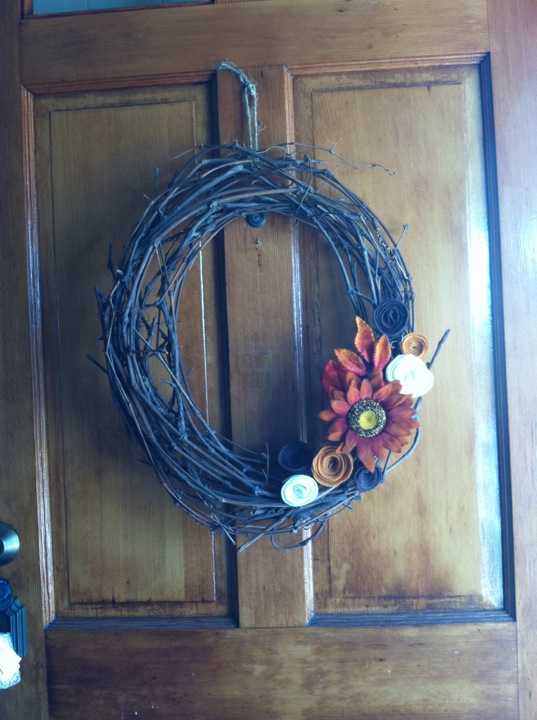 My really boring wreath needed to be spiced up. So I made this here wreath for my door.