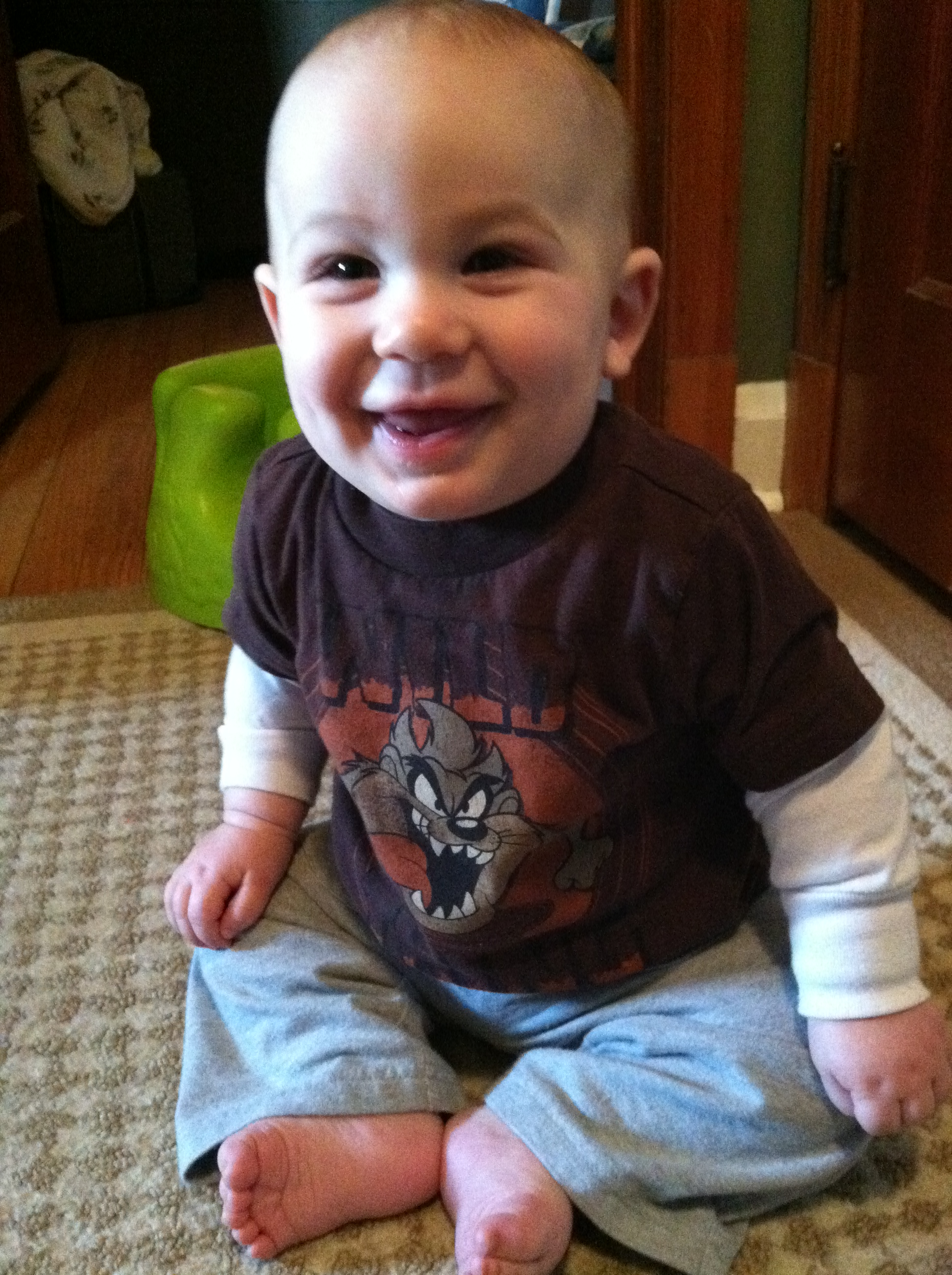 You FINALLY got yourself some teeth. It only took 8 1/2 months. Don’t worry- that hasn’t stopped you from devouring every kind of food I put on your plate. Once you started eating solid foods, your true independent personality made its appearance. For three months, you would not allow anyone to hand feed you without screaming and throwing a fit. Needless to say you went straight to solid foods with no problem. So far, your favorite things to eat include meat (any kind), pancakes and broccoli.